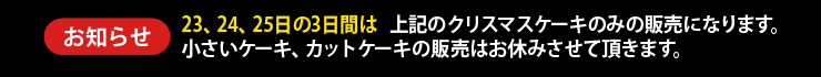 12/23(火),24(水),25(木)のお渡し